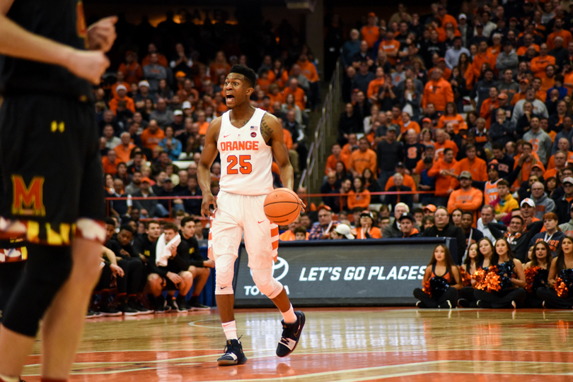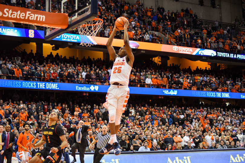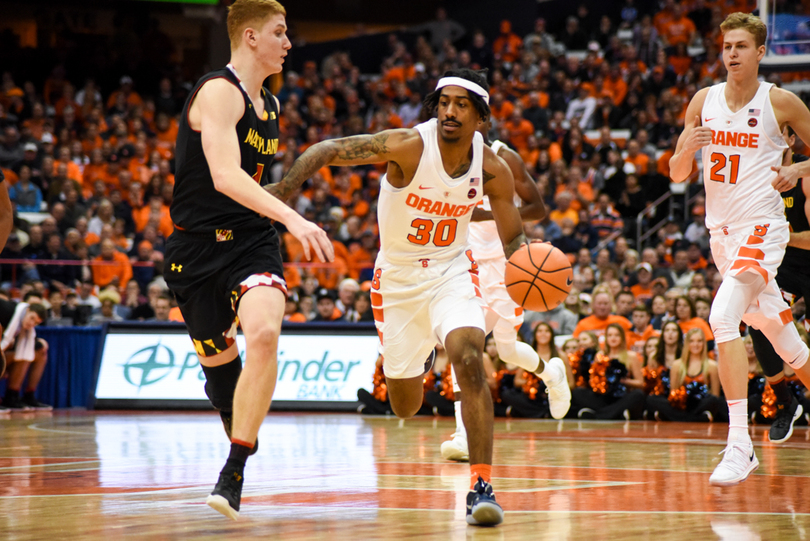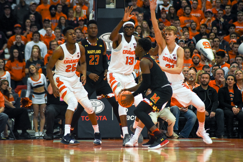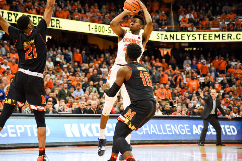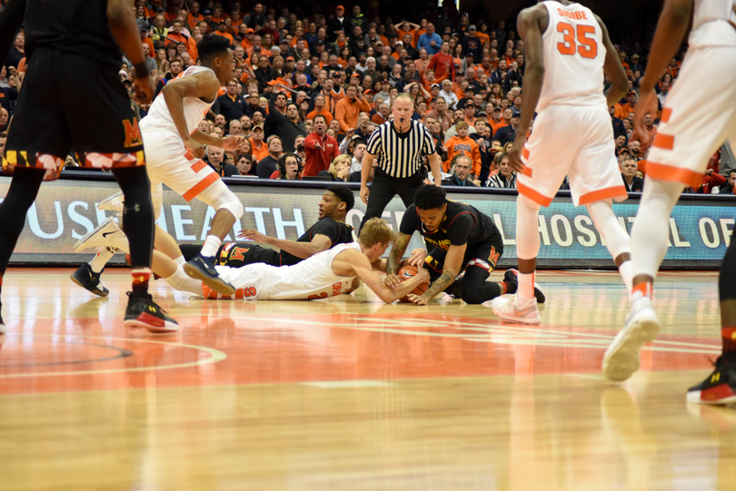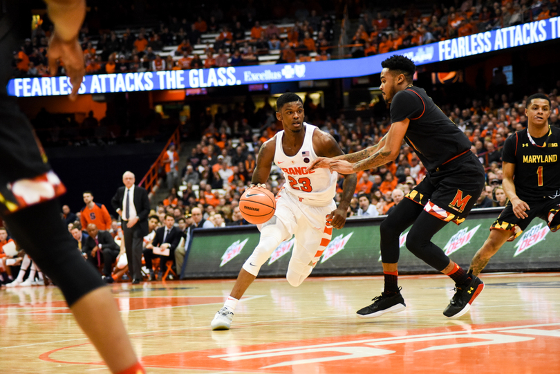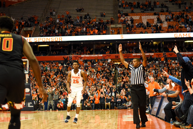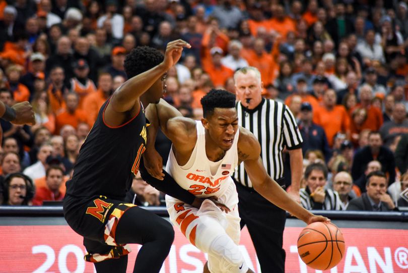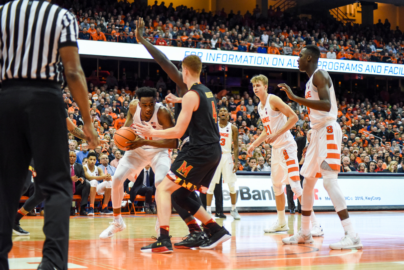 Syracuse (6-0) stayed perfect Monday night, winning its hardest game of the season yet, 72-70, against Maryland (6-2). Tyus Battle fought through a back injury to lead SU with 18 points, including a clutch corner 3-pointer with less than a minute to play. Frank Howard led a stout defense with seven steals to accompany his 15 points and 10 dimes. For the Terrapins, Kevin Huerter was on fire, splashing seven of his nine attempts from behind the arc, including a late 3 to keep Maryland in the game.