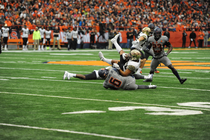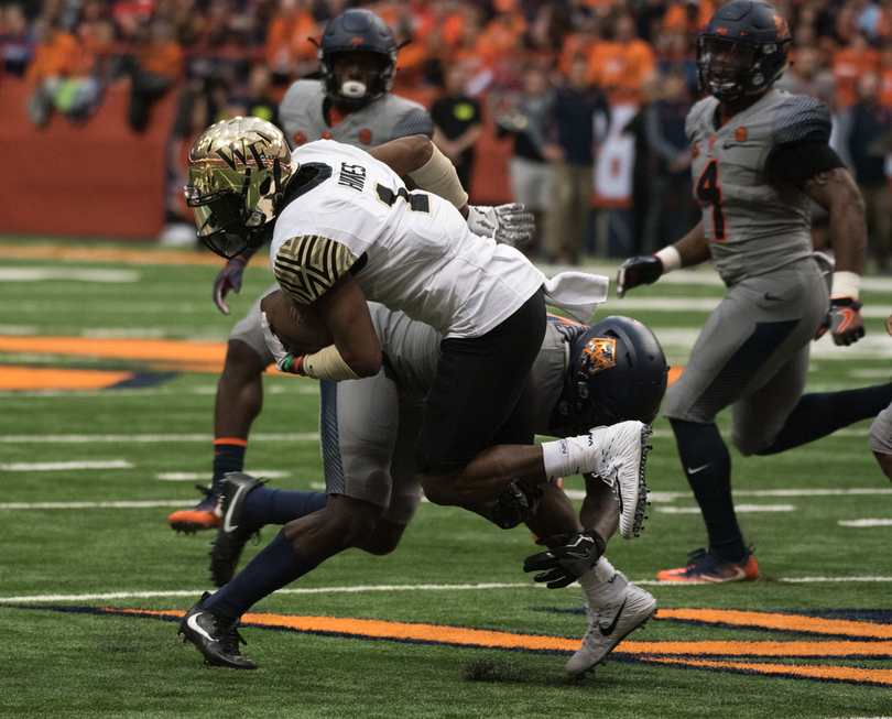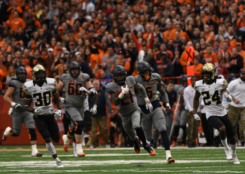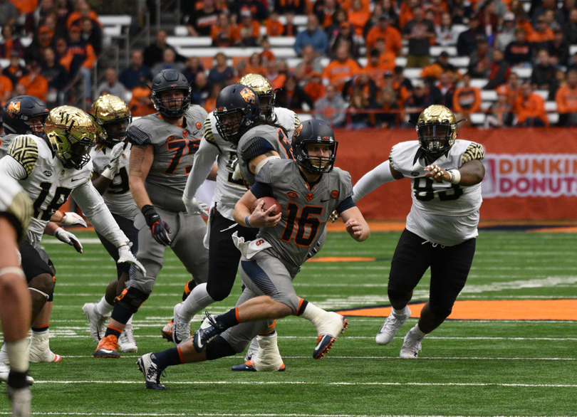 Syracuse (4-6, 2-5 Atlantic Coast) fell to Wake Forest (6-3, 3-3), 64-43, at home Saturday. WFU quarterback John Wolford accounted for six touchdowns and almost 500 yards of total offense. With the loss, Syracuse will likely need to win its final two games to become automatically bowl eligible. Standing the way is a trip to Louisville, Kentucky, to face reigning Heisman winner Lamar Jackson. Then, in the final week of the season, Syracuse hosts Boston College two days after Thanksgiving.