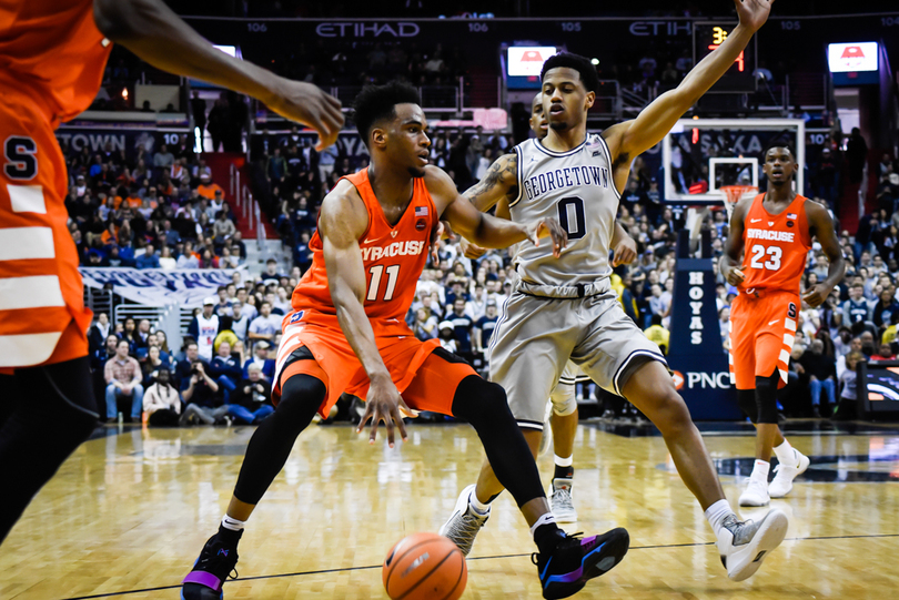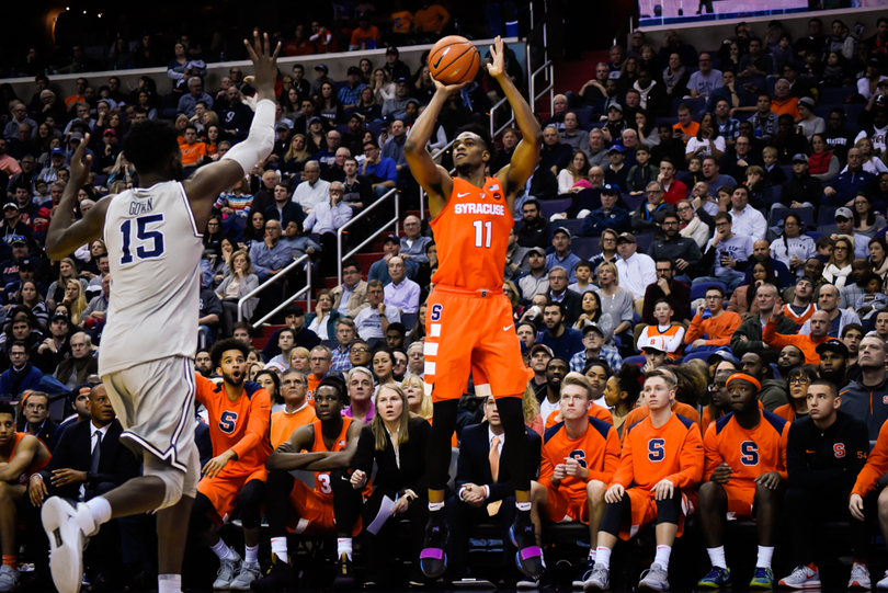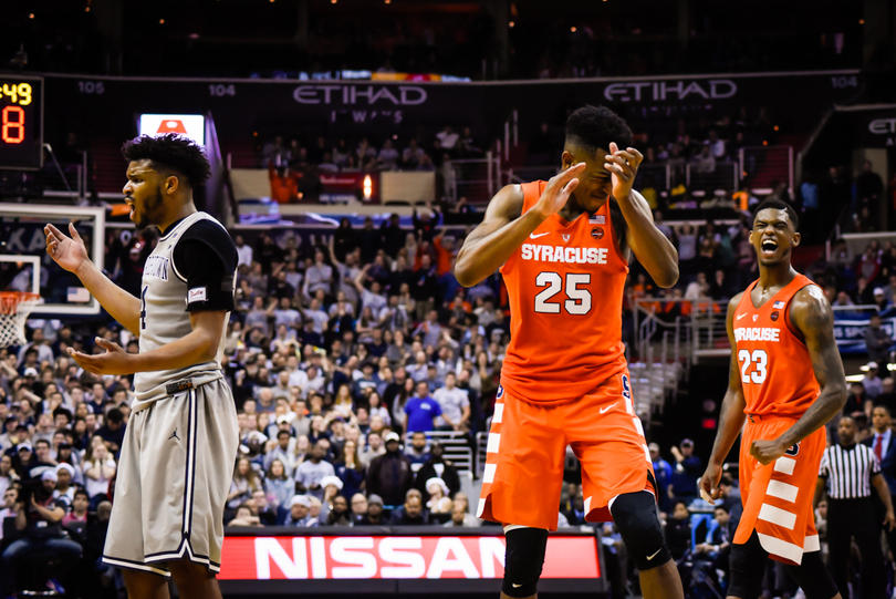 Syracuse (9-1) recovered from a double-digit deficit to force overtime and knock off Georgetown (8-1), 86-79, on Saturday afternoon in Washington, D.C. Tyus Battle dropped 29, Frank Howard scored 19 to go with his nine assists and freshman Oshae Brissett scored a career-high 25 points to go with 14 rebounds.