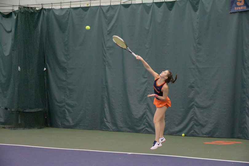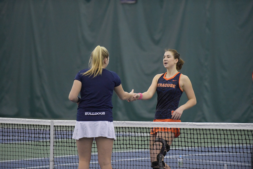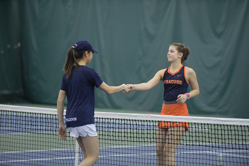 Syracuse (6-1, 1-1 Atlantic Coast) entered Sunday’s match with an advantage because Yale (3-5) had just five healthy players compared to the six that need to play. So the Orange got one automatic win in both doubles and singles and SU used that to roll to an easy victory on Sunday at Drumlins Country Club.
