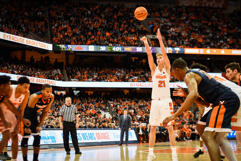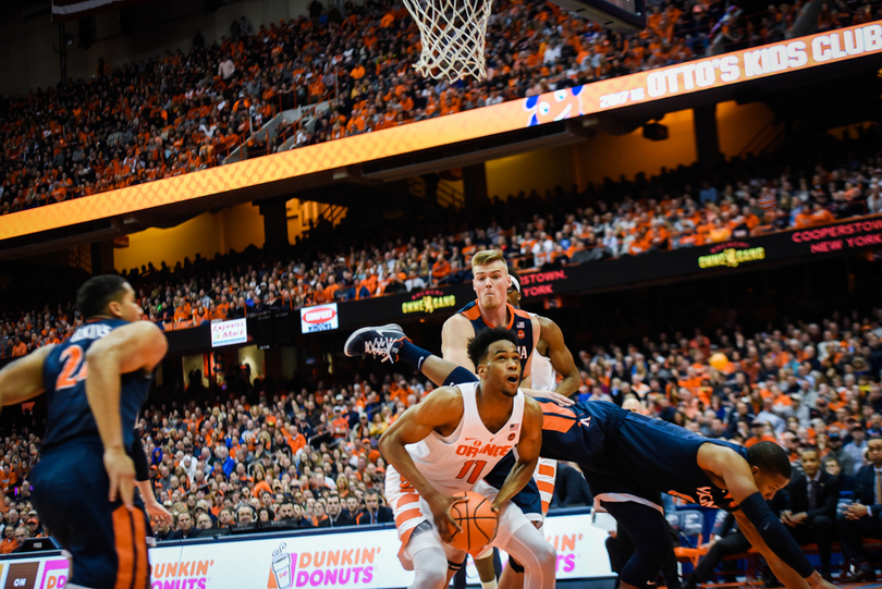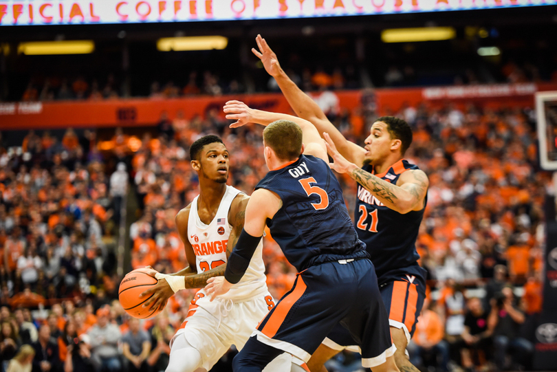 Syracuse (15-8, 4-6 Atlantic Coast) couldn’t ever get it going against No. 2 Virginia (22-1, 11-1) in a 59-44 loss Saturday in the Carrier Dome. Virginia’s bench poured in 27 points while SU’s only bench player to get in the game, freshman forward Matthew Moyer, didn’t even have a shot attempt. To go with three double-digit scorers, UVA’s pack-line defense limited SU to 33.3 percent shooting from the floor.