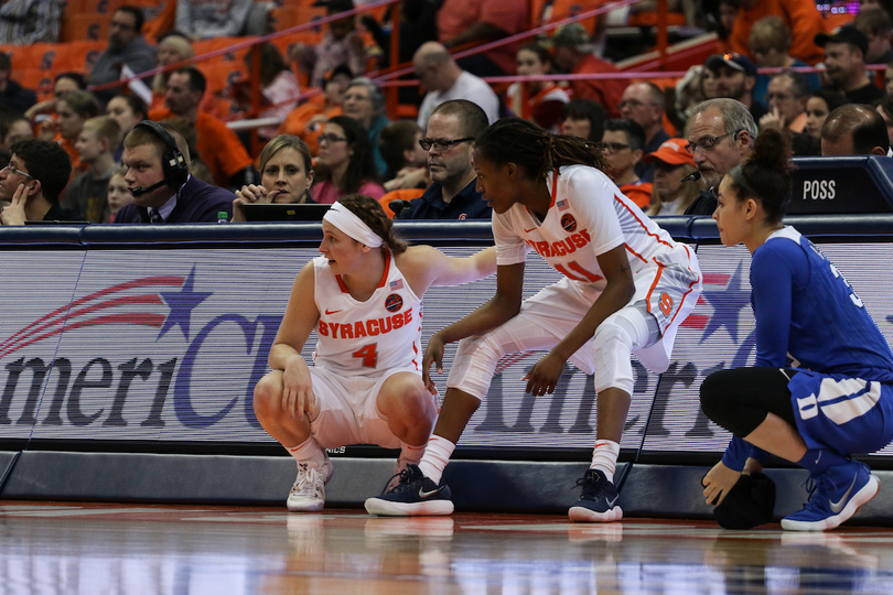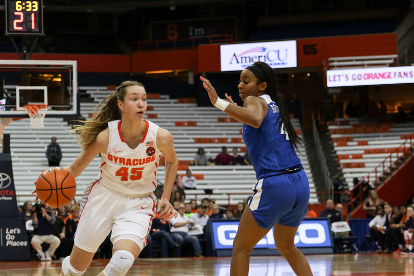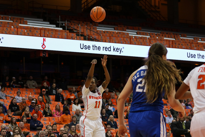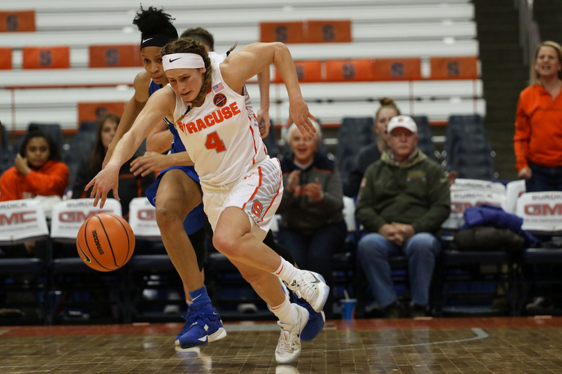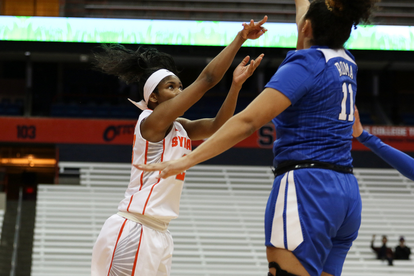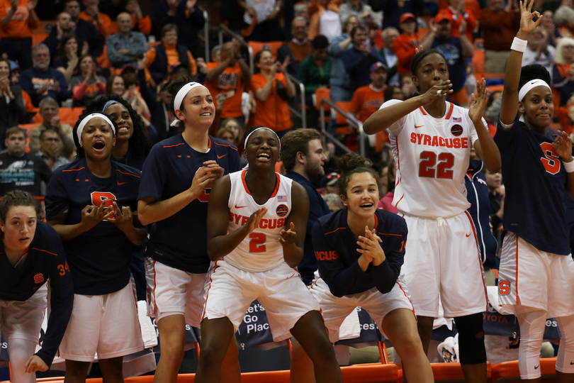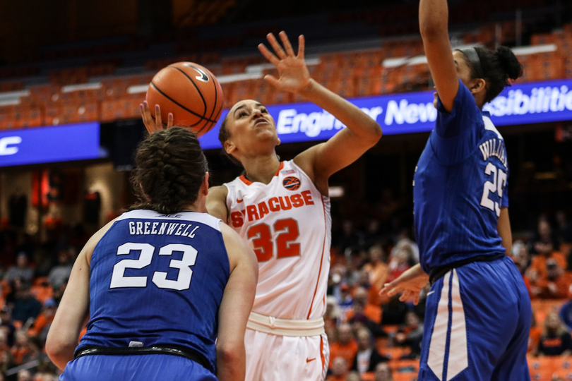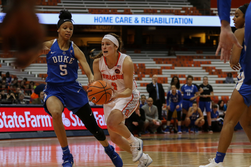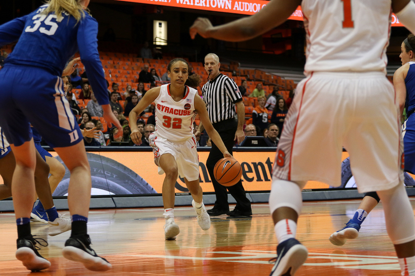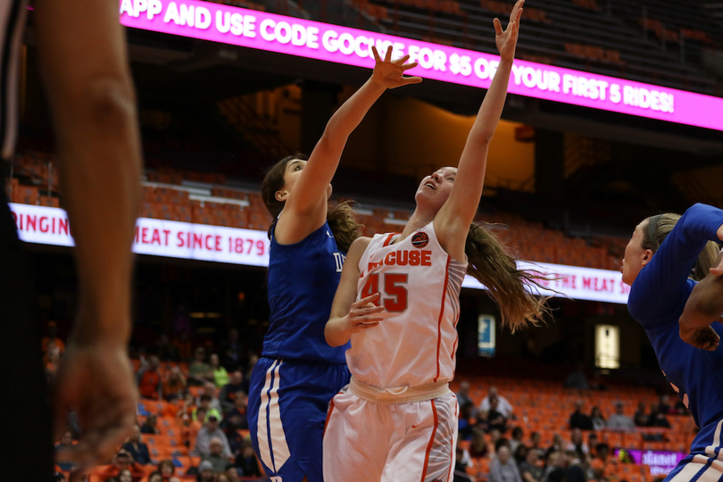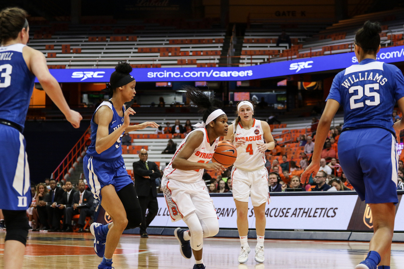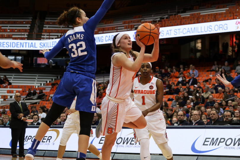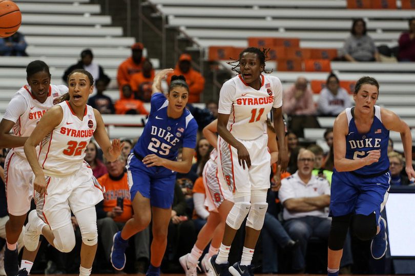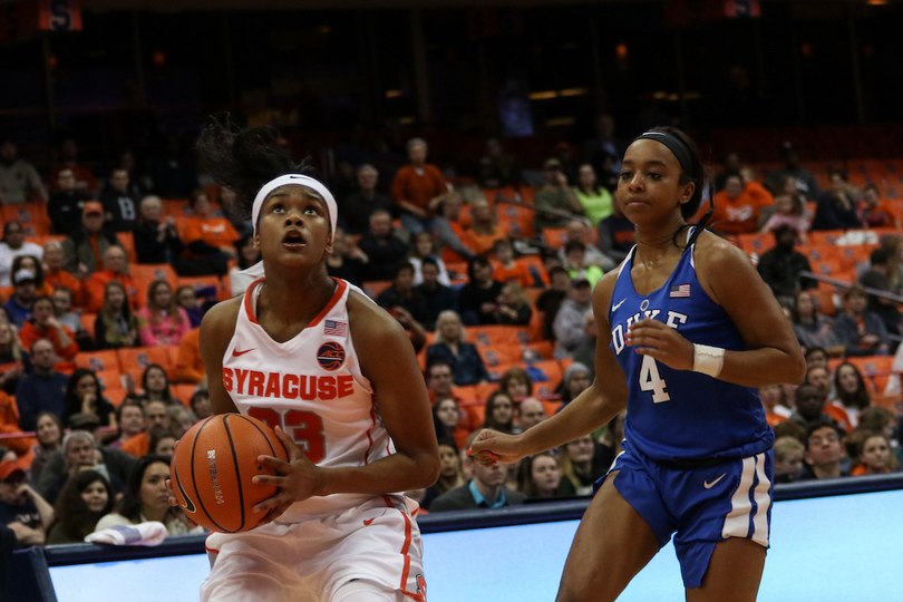 Syracuse (19-7, 7-6 Atlantic Coast) shot 11-of-19 from 3 in the first half on Thursday. The second half didn’t come as easily though. The Orange scored just 25 points in the final 20 minutes. But when it mattered, Tiana Mangakahia knocked down her fifth 3 and SU got a key stop. It was enough to upset No. 17 Duke (20-7, 9-5), 68-65, in a crucial win as the regular season winds down.