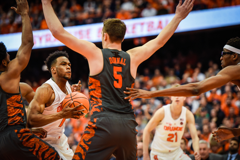 On Saturday afternoon in the Carrier Dome, Syracuse (19-12, 8-10 Atlantic Coast) beat its first ranked opponent of the season in No. 18 Clemson (22-8,11-7). Tyus Battle and Oshae Brissett led the Orange with 17 points each. Despite no SU field goals during the final 8:45, Syracuse’s defense and 11-0 run earlier in the half gave SU enough relief to pull out the upset. Syracuse next plays on Tuesday at the Barclays Center in the ACC Tournament, in which SU is 0-3 since joining the conference.