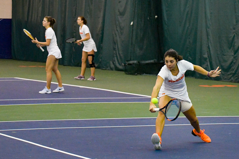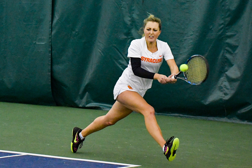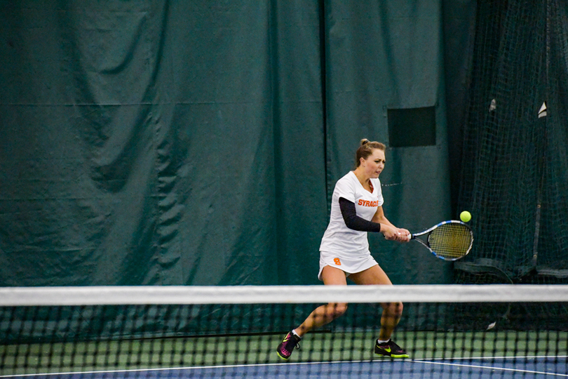 No. 34 Syracuse (14-3, 6-3 Atlantic Coast) had never beaten a team ranked as high as No. 3 in the country. On Sunday at Drumlins Country Club, the Orange beat No. 3 Georgia Tech (14-4, 6-2), 4-3. Gabriela Knutson clinched the match with a three-set win at first singles to give the Orange its biggest win, by ranking, in program history.