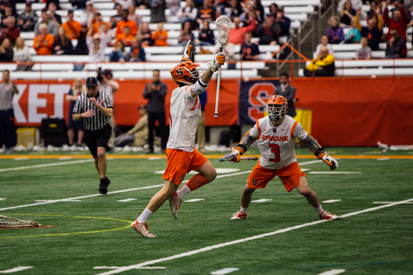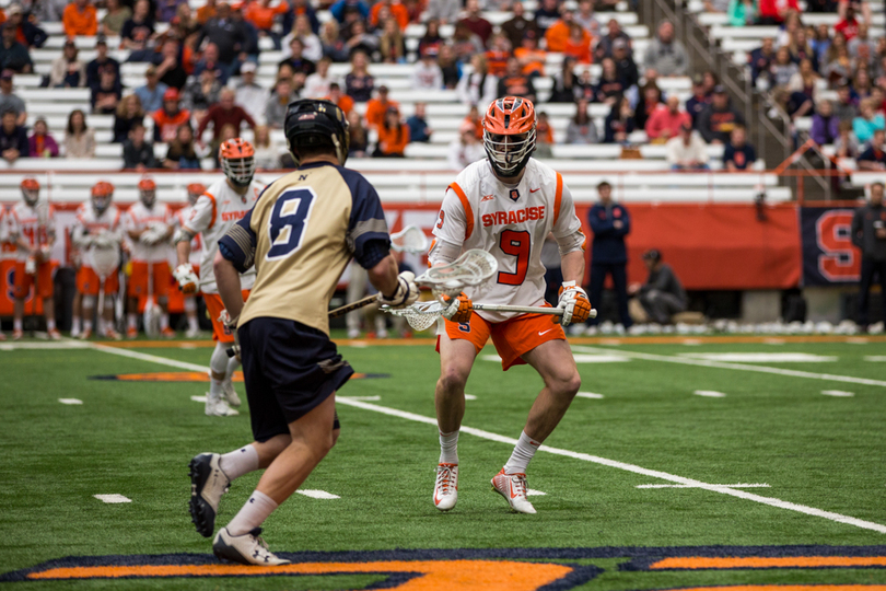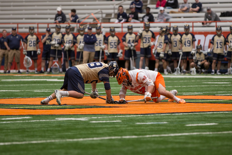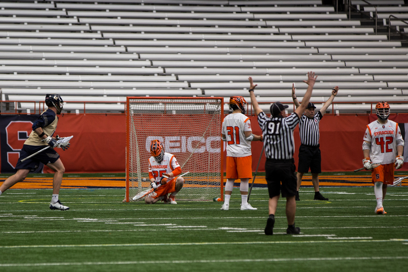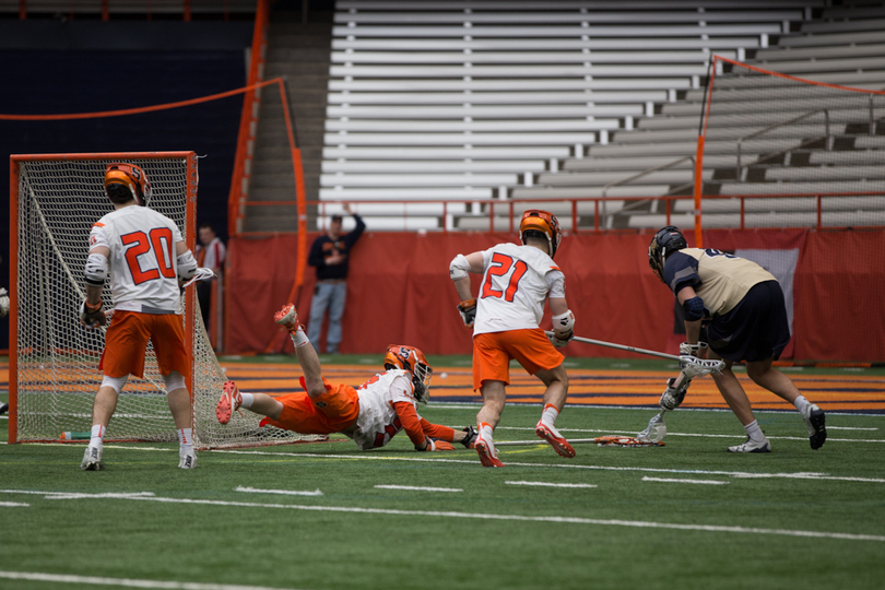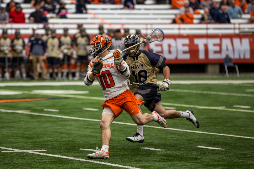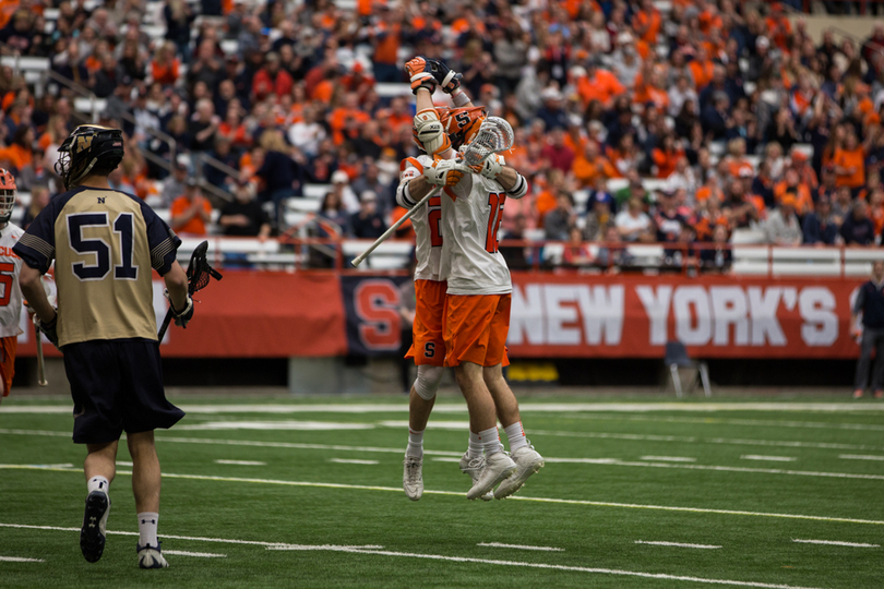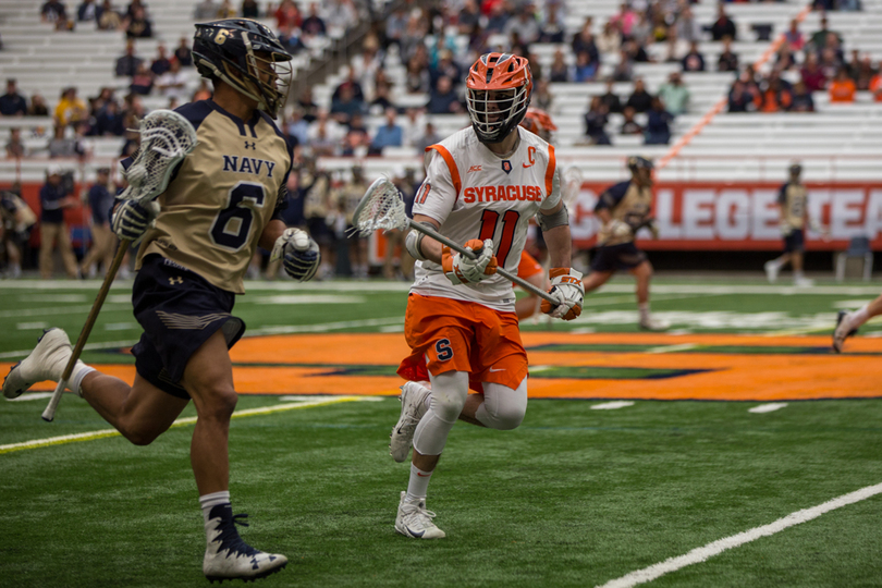 Joe Varello and brother Danny Varello faced off on Saturday, with the elder brother, Joe, getting the better of his young brother in No. 9 Syracuse (7-5, 4-0 Atlantic Coast) 13-12 loss to No. 14 Navy (9-4, 7-1 Patriot). Syracuse sophomore attack Stephen Rehfuss tied a program season-high with seven points while Navy’s Jack Ray notched six points. SU’s Dom Madonna made 11 saves in the loss.