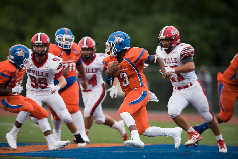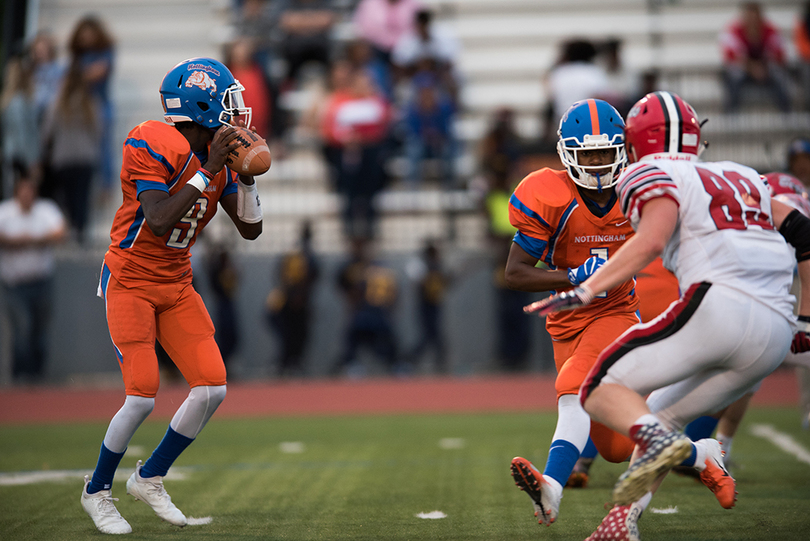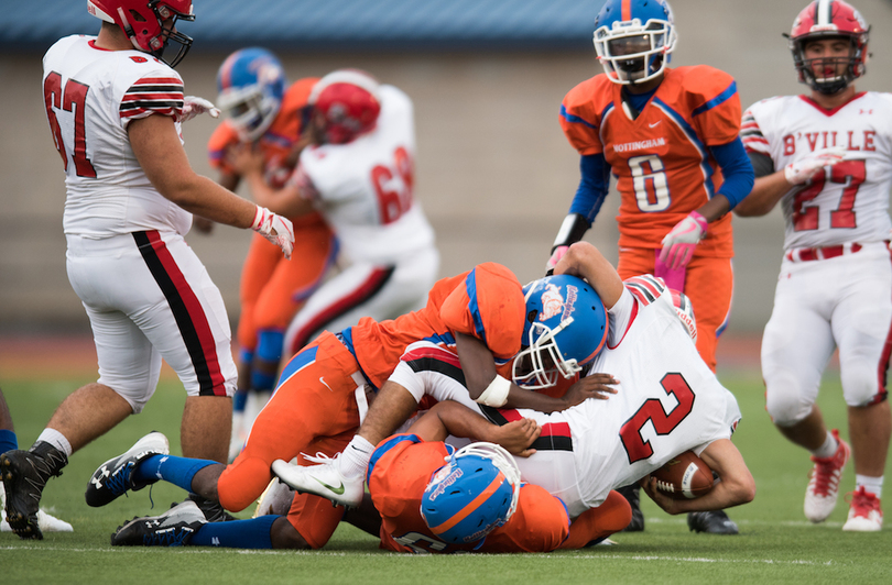 Nottingham opened its season with a road win at Rome Free Academy. That led into a home opener against last year’s sectional runner ups, Baldwinsville. But the Bulldogs (2-0) defended home turf with a 20-0 win over the Bees (0-2). Playing with its backup quarterback at the helm didn’t slow Nottingham, which led from start to finish in a statement performance.