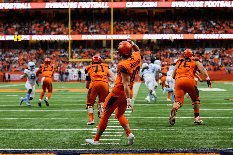 Syracuse (5-2, 2-2 Atlantic Coast) bested North Carolina (1-5, 1-3), 40-37, in double overtime behind a three-touchdown effort in the fourth quarter and overtime from Tommy DeVito. The Orange trailed the entirety of the game but were able to forge a comeback and force two extra periods, eventually holding on to win.