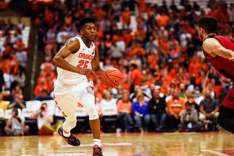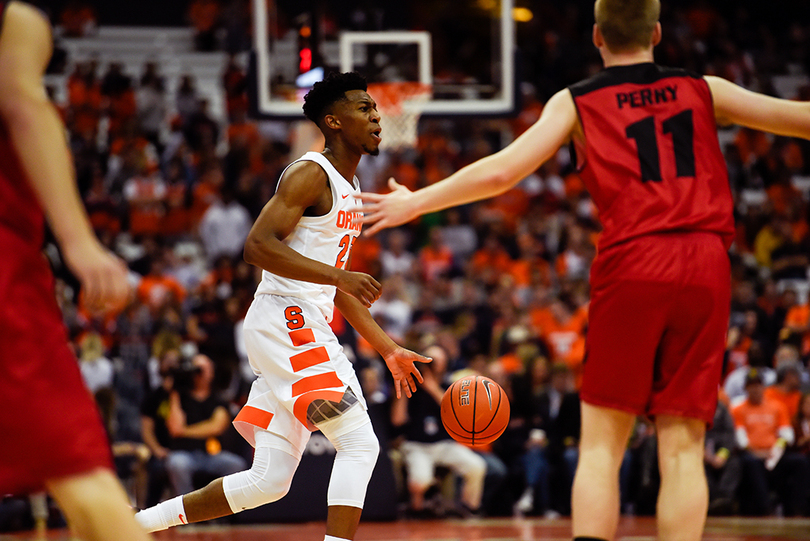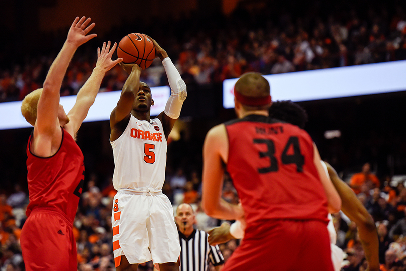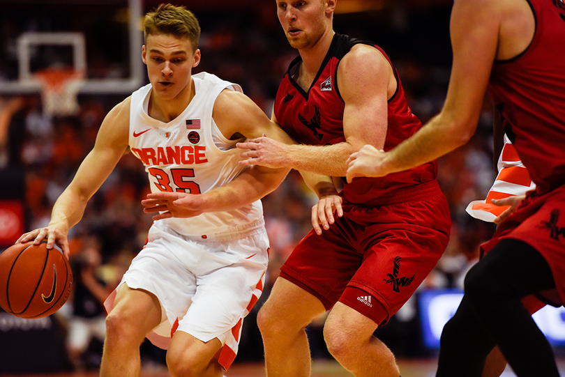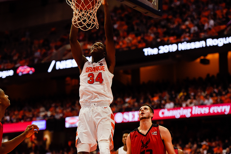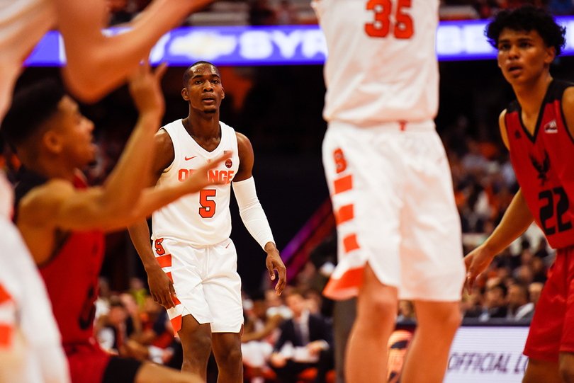 Syracuse (1-0) won its 15th-straight opening night contest on Tuesday in the Carrier Dome, defeating Eastern Washington (0-1), 66-34. The Orange were led by 20 points and eight rebounds from sophomore forward Oshae Brissett. The 34 points allowed were the fewest Syracuse had given up in the Carrier Dome, and much could be attributed to an effective full-court press which shut down the Eagles and got SU 33 points off turnovers.