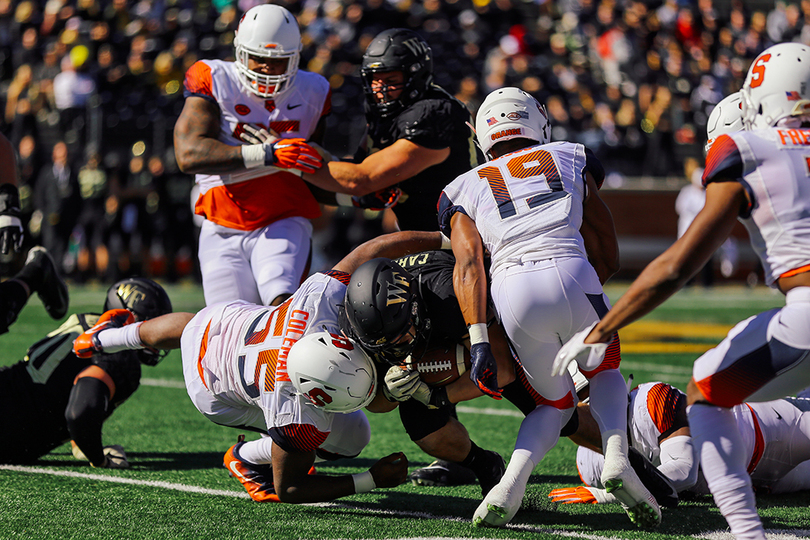 Prior to Saturday, Syracuse hadn’t won a game in November under Dino Babers. But SU did just that, winning 41-24 at Wake Forest. The Orange won unconventionally, too, getting the victory without throwing a passing touchdown for the first time since 2014, before Babers’ tenure. The effort was sparked in part by strong defense from Ryan Guthrie, who tallied 11 tackles and two sacks.