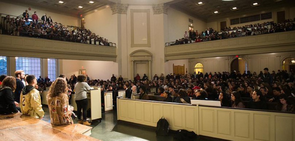 More than 300 SU students, administrators, faculty and staff attend a town hall at Hendricks to comply with the demands of the Recognize Us student activist group.