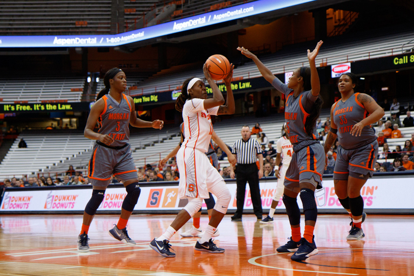 With so much turnover and returning just one starter from last season’s squad, the Orange got a quick glimpse on what it could be this season on Friday night. The Orange (1-0) got major contributions from newcomers and dominated on the offensive glass to defeat Morgan State (0-1), 95-68, in the season-opener. You can check out our best shots from the game below.