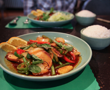 Lao Village, written in a vibrant red, faded into the green background. The complementary color scheme decorating the awning made it difficult to read the… Read more »