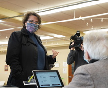 Congressional candidate Dana Balter visits polling site near South Campus