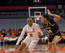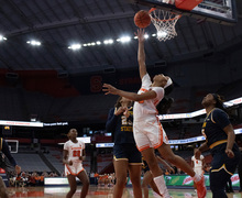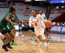 Syracuse jumped out to a 45-23 halftime lead, while Dariauna Lewis recorded 13 points and 12 rebounds. SU dominated the paint and the boards. Read more »