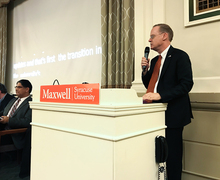 Syracuse University Chancellor Kent Syverud answered questions at a Wednesday forum about staff layoffs, the university’s endowment and the graduate student experience. Read more »