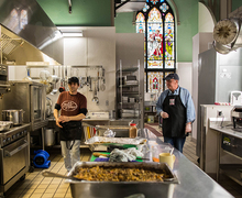 Donations from places like Otro Cinco, Chipotle and Wegmans make up 60 percent of the food prepared at the soup kitchen each day, promoting food sustainability across central New York.