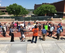 Syracuse University community members gathered in front of the Hall of Languages to protest the University Place promenade on Tuesday. Read more »