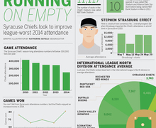 Minor league baseball teams are having to rely on entertainment and promotions to bring fans out to the ballpark. As the Chiefs are set to have their home opener at NBT Bank Stadium on Thursday, the club will look to rebound from a season in which it placed last in the International League in attendance. But now second-year general manager Jason Smorol is confident that there’s a turnaround coming up. Read more »