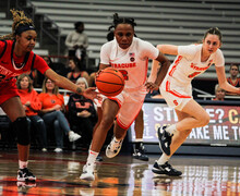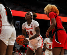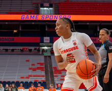 Syracuse jumped out to a 45-23 halftime lead, while Dariauna Lewis recorded 13 points and 12 rebounds. SU dominated the paint and the boards. Read more »