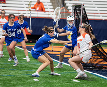 Syracuse trailed Duke by seven goals after the first quarter, but Meaghan Tyrrell and SU's other attacks stepped up in the final three quarters. Read more »