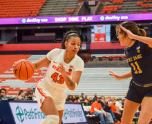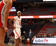 Syracuse defeated Monmouth 87-46, led by Teisha Hyman's highest efficiency of any Orange player on Wednesday night. Read more »