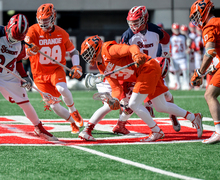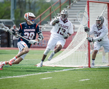 The senior lost 13 faceoffs in a row against North Carolina's Stephen Kelly, but rebounded in the second half to give Syracuse a chance at erasing a nine-goal deficit. Read more »