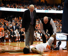 Tauren Thompson scored 12 points in 13 minutes before leaving with an injury. But he faltered on defense. "He was very good on offense, but he gave up about five baskets on the other end,” Jim Boeheim said. Read more »