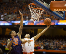 K.J. McDaniels scored 19 points and snagged 10 rebounds. He also affected Syracuse's shots around the rim and was Clemson's best player by a long shot. Read more »