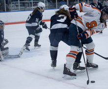 The Orange surrendered eight penalties, three of which came in the third period, but its defense remained strong. The offense, meanwhile, finally found that third goal it has been looking for to put the game out of reach. Read more »
