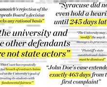 Unlike student conduct offices at public colleges, OSRR is not bound by due process — a standard set by the courts — and instead utilizes “fundamental fairness." Read more »