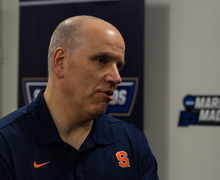 Jim Boeheim discussed Syracuse's self-imposed NCAA Tournament ban last year at the Scottrade Center in St. Louis on Thursday. Read more »