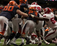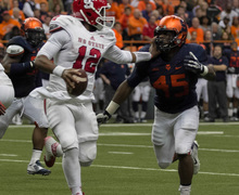 Defensive lineman Ron Thompson’s rushing touchdown said more about SU’s running game than it did about wrinkles in offensive coordinator Tim Lester’s playbook. Read more »