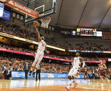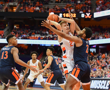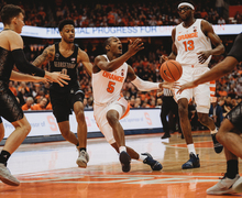 Elijah Hughes (33) and Buddy Boeheim (26) both scored career-highs as SU's offense erupted for 97 points on Saturday. Read more »