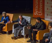 A mix of about 75 students and faculty members attended the event, asking a range of questions about Invest Syracuse fundraising goals. The forum was hosted in Goldstein Auditorium at Schine Student Center. Read more »
