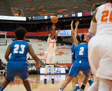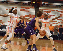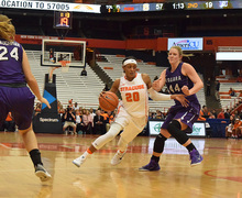 By Matthew Gutierrez | December 20, 2016 The Orange got its fifth straight victory behind Alexis Peterson's 27 points, Brittney Sykes' 20 and Gabby Cooper's 19. Read more »