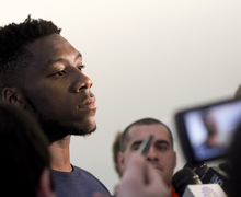 Speaking with reporters Wednesday morning for the first time since, Brittney Sykes says the process is the same. She’s doing the same workouts and talking to the same people. Sykes hopes to be back at the start of the 2015-16 season and SU head coach Quentin Hillsman expects her to qualify for a medical redshirt, which would give her two years of eligibility remaining. Read more »