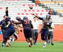 The first words out of Scott Shafer’s mouth to the media after Syracuse’s spring game were that he was happy to get through it. Saturday afternoon came and went with one touchdown on more than a dozen drives. Here are a few thoughts on the Orange’s offense. Read more »