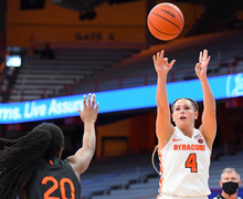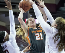 Mangakahia played her final game at Syracuse Tuesday against UConn. She retires as Syracuse's all-time assists leader, with 736. Read more »