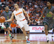 Tyler Ennis and Trevor Cooney shot a combined 6-of-20 in No. 1 Syracuse's 56-55 win over N.C. State Saturday night. Ennis and Cooney have played extremely well overall this season, but have struggled scoring the ball of late. Read more »