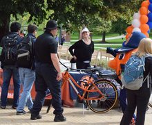 The Syracuse University Student Association debuted its bike share program with eight orange bikes. The bikes come with U-locks, a lock-key, basket and a light. Read more »